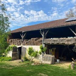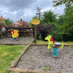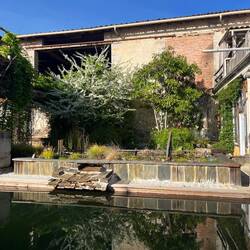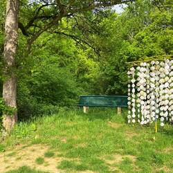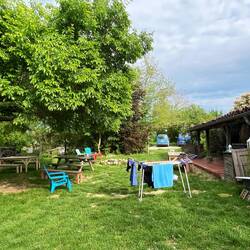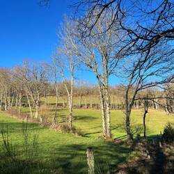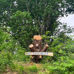 The farm where I am staying is 4 km off the GR. I was trepidatious as I was trudging up the last hills. But it’s fabulous. Massive old farmhouse. There is a gite but it was already full for tonight so I have my own room in the house. It’s a place that has clearly been full of projects. 35 years of renovations and maintenance, but also funky art and garden projects. Ponds to recycle water from the house. Sculptures. A treehouse/yurt thing. And the best thing: the ponds are home to frogs! They have a lot to say.