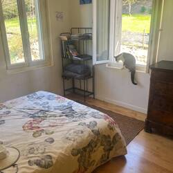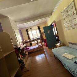 Two rooms, three of us. I got to have the room with the double bed. Age? Language? Maybe also Florence just being nice. She arrived first and took a bed in the other room. I did not argue; this room is beautiful. As they say on Escape to the Country, it has a dual aspect.