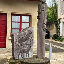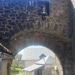A lot of the day was spent following rivers. There were lots of little streams running down the hillsides to meet them. Brooks, creeks, streams - I’m realizing I don’t know the difference. But there was a lot of running water. And then for about an hour the chemin goes along the shore of a “lake.” It was really a reservoir. And while it’s beautiful to see water (and it seems the lake is a big deal), the lakeshore felt very sterile to me. So I asked at the tourist office later, when I was checking in to the gite - was that actually a lake? Well, no. And, yes, they dynamited the houses and drowned the villages. Apparently someone local, who would be about my age, and was a child in one of the villages when this happened in the 1960s, wrote a book about it.