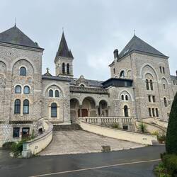 I am staying tonight in a monastery. Much smaller and much older than the convent I stayed in before. I only met one monk for a few minutes; they don’t come to where the pilgrims are. The service where they do a blessing for the pilgrims (compline? 8:30 pm) was canceled. So no singing tonight. The person who meets you and shows you around is a volunteer, here for a few days. Again it’s just Michel and I, and we each have our own rooms. There were six people at dinner - Michel and me, the volunteer and his friend, and a man and woman who are just walking for a few days and have their own room. . The building is, from the outside, not spectacular. But there’s a cloister just inside the door and a huge garden at the back and a big huge main room where we had our dinner. Thw cloister is full of swallows - hirondelles, which is such a great word. Funny that the dinner was the same dinner I had at the convent, minus salad. Vegetable soup, a kind of homemade pizza, an apple compote and fresh cheese. But the thing we will all remember about tonight’s dinner is the flies. Why do Europeans not use screens? There were probably 70 flies, circling the table and the food and us. Ugh! The company was good though.