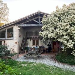 I’m writing this on a terrace in front of the Maison St Jacques, an association gîte in the centre of a village that is very beige, but pleasant enough. (I expect people must commute from here to Toulouse.) The village has provided the house to the Association Jacquaire and volunteers take care of the gite. 8 volunteers and each one is responsible for greeting the pilgrims, cleaning and whatever else for 4 or 5 weeks over the season. That’s a lot of work! It’s a big old house. Good kitchen. Dormitory with 7 beds downstairs toilet and shower room upstairs. €10 a night.