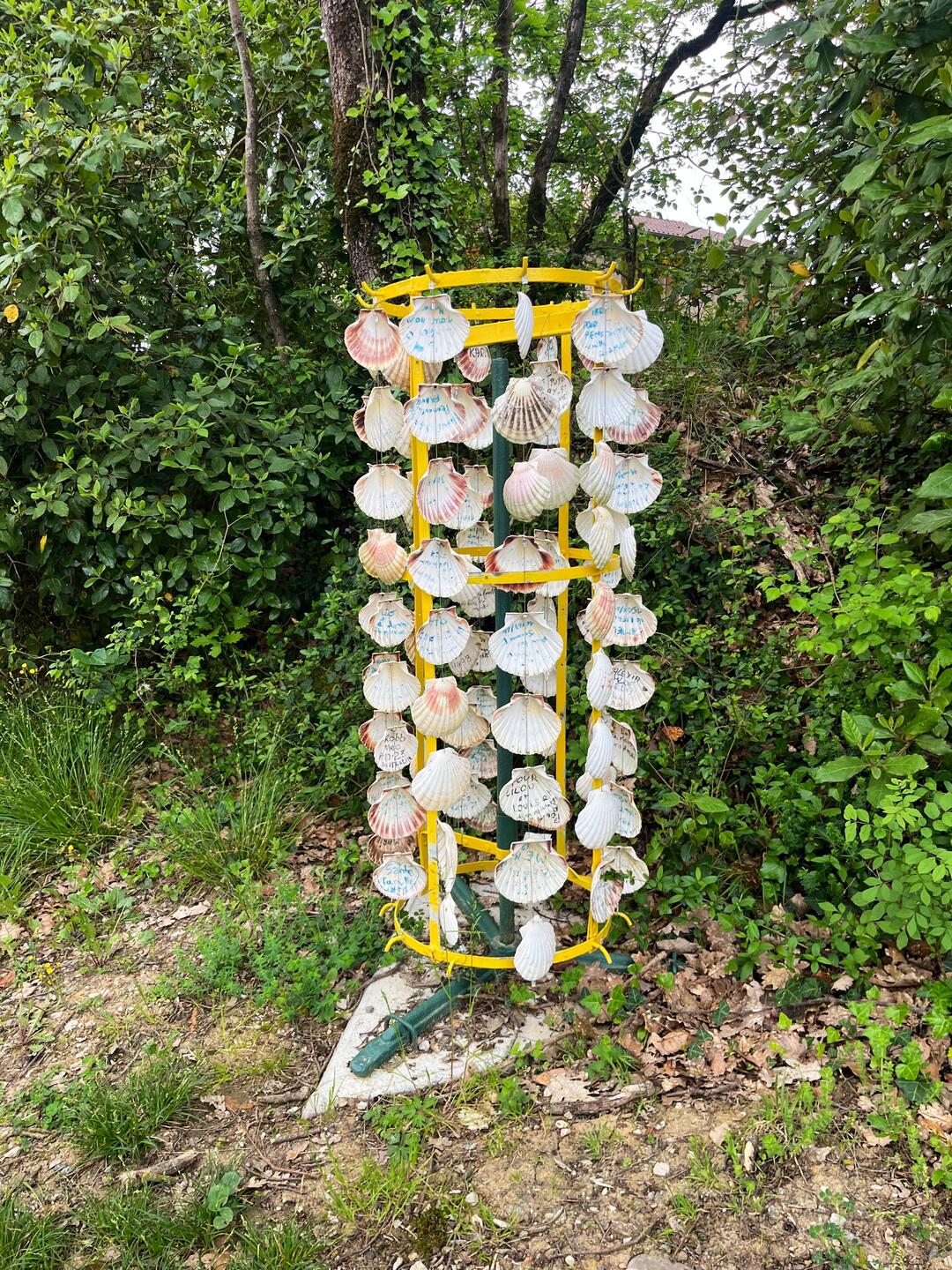 Second miracle of the day: a picnic table when I had given up hope of finding anywhere to sit that would not land me in cow or sheep poo. I’d walked through a village fully expecting to find a bench somewhere, but there were none. They did have very nice signs pointing towards Compostela though. And then I thought there would surely be somewhere to sit on the lane that the chemin was following. There was not. Too much sun and too much animal poo. Eventually I saw a huge tree up ahead and thought, I’ll just sit under that! And then when I got closer there was a table! Amazing.
