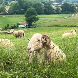 From one farm to another today. I said bye to Florence this morning. She will be walking longer days than me today and tomorrow. Also said bye to the huge Newfoundland dog that was staying at the gite. And later in the day, bye Cyri’elle who went to the outskirts of Castres today and, I think, is going back home tomorrow.