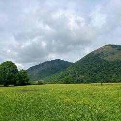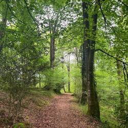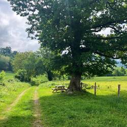 Long, hilly, hot day, with a lot of trees. Not the most exciting walk. Highlight: I finally zipped off the legs of my pants. It was that hot. 28 degrees at some point when I looked. But really humid. Walking in hiking pants when it is hot is like wearing plastic bags.