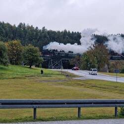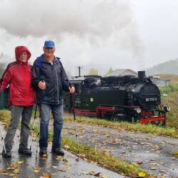 Heute wollten wir zu Radek, mussten aber kurz vor Ceske Hamry wegen starken Regen abbrechen. Auf dem Rückweg hast uns noch die Fichtelbergbahn überrascht und Balthasar hat wieder den Kopf drauf.