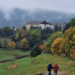 Heute sind wir zum Schwarzen Teich gewandert, bei richtigem Herbstwetter