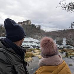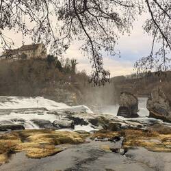 Am späten Vormittag ging es zum Rheinfall. Der Himmel wolkenverhangen, die Wassermassen dafür in Bestform – laut, imposant und völlig unbeeindruckt vom Wetter.