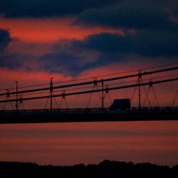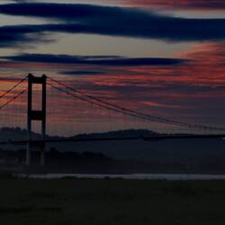 Stellplatz am Straßenrand mit Blick auf die Severnbridge und die Prinz of Wales Bridge