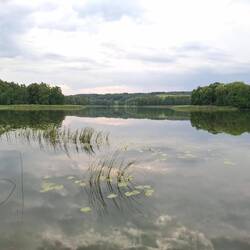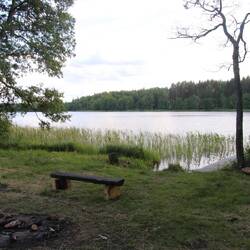 Allein im Wald am See mit 8 Millionem Mücken offizieller Platz mit Feuerstelle und Steg von dem man gut ins Wasser kommt
