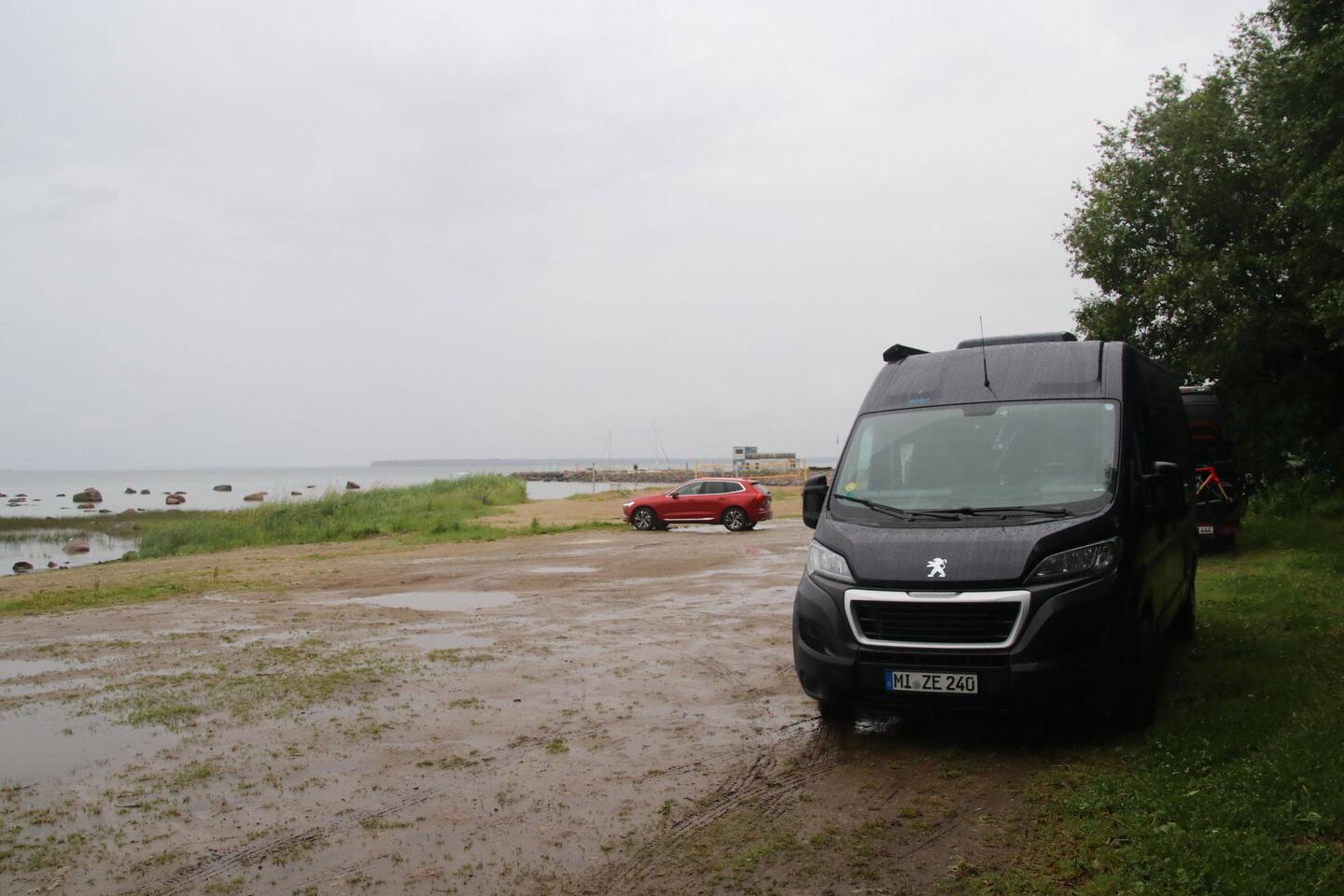 Ankunft auf Hiiumaa bei Regen, deshalb nur Stellplatz aufgesucht Morgens Wanderung zur Landzunge