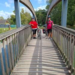 Stellplatz an der Orne, am Bahntrassenradweg Voie Verte de la Suisse Normande gelegen. Ausgangspunkt für Radtour en nach Caen und Clesy