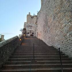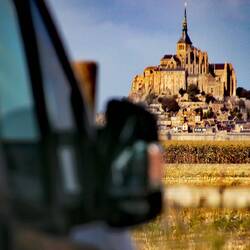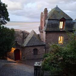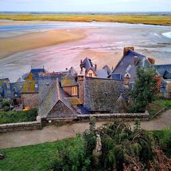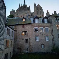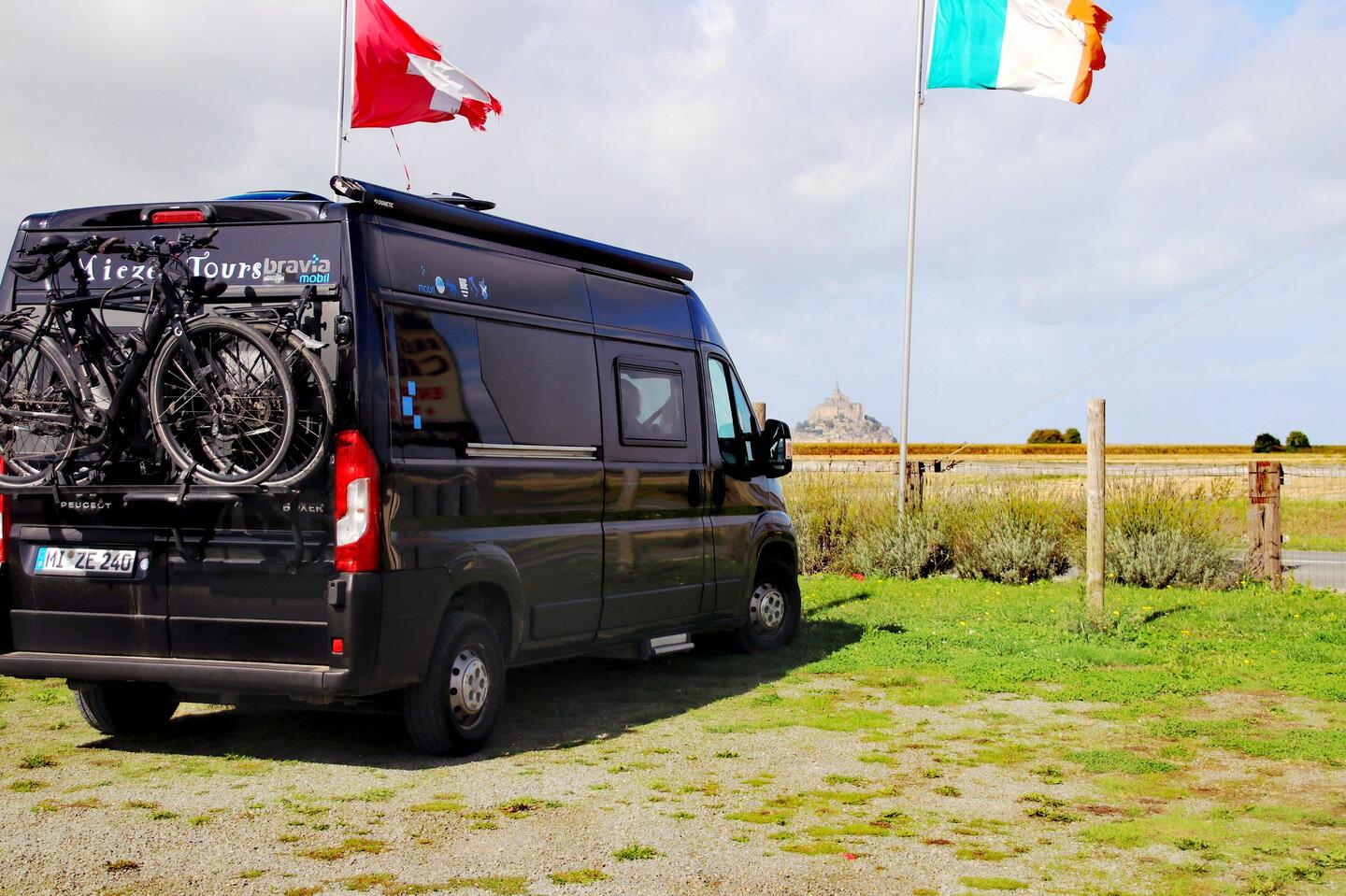 Stellplatz mit Blick auf den Mont San Michel. Gut mit dem Fahrrad erreichbar. Am Abend relativ leer.