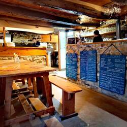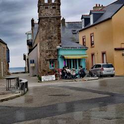 Camping mit Aussicht auf den Hafen von Fret und Brest. Tolle Creperie mit exzellenten Galettes & Crêpes im Ort