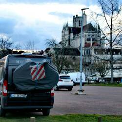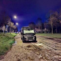 Gestern unruhige Nacht in Krefeld.Die Bäume am Stellplatz saßen voller Krähen und Nachtigallen🙈Heutiger Stellplatz am Rummelplatz in Reims 😂