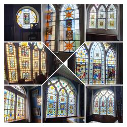 Die Schweizer Glasfliesen schmücken sämtliche Fenster. Franz Friedrich von Anhalt- Dessau reiste viel, liebte Kunst und sammelte Eindrücken aus aller Welt. Diese inspirierten ihn bei derLeer más