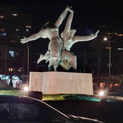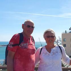 Ich nehme die Treppe hinunter, Uwe ist faul und benutzt den Fahrstuhl. Unten angelangt genehmigen wir uns, in einer Bar mit Aussichtsplateau mit Sicht über den Hafen und die Stadt, einen Sangria.