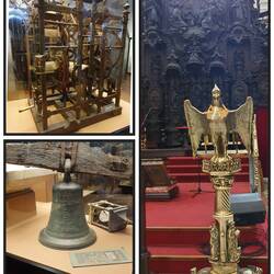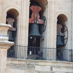 Auf dem ehemaligen Areal der Moschee sind die verschiedensten Glockenaufhängungen zu sehen.