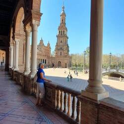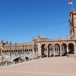 Eine halbe Stunde Busfahrt und wir erreichen den berühmten spanischen Platz von Sevilla. Wir sind begeistert.