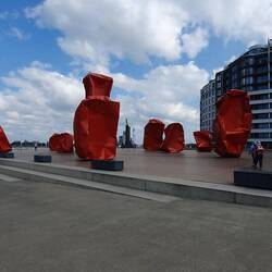 Die Statuengruppe "Bürger von Calais" stehen auf dem Rathausplatz, ein Stück weiter entdecken wir das Hafenviertel Courgain. Hier lebten im 12.Jahrhundert die ersten Bewohner des Dorfes. DavorLæs mere