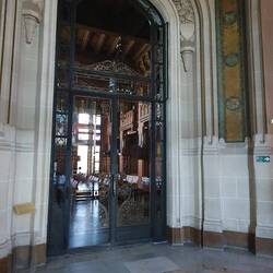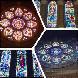 Die bleiverglasten Fenster, sowie die Tür.- und Deckenkonstruktionen beeindrucken uns schon sehr.