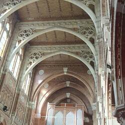 Die kath. Kirche Saint Vaast sticht uns als erstes interessantes Objekt ins Auge. Die Kirche ist von innen und außen ein in rot chattierter Backsteinbau in gotischer Architektur, bzw. neoflämischemLæs mere