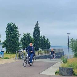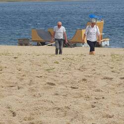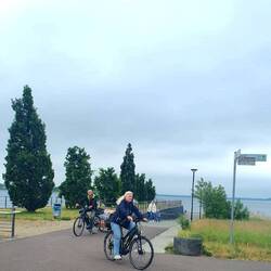 Da der Stellplatz auf einer Anhöhe liegt, kann man von hier über einen Großteil des Goitzschesees blicken. Wir radeln entlang des gepflegten, sehr grünen Uferradweges bis zum Bitterfelder Czytaj więcej
