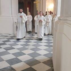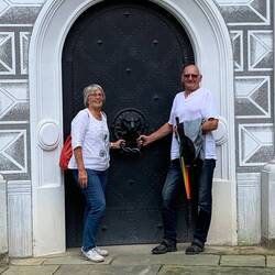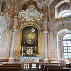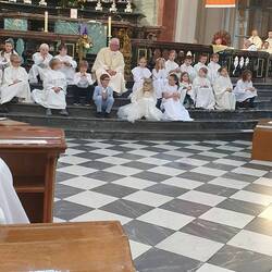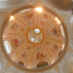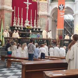 Da heut Fronleichnam ist, findet in der Hofkirche dazu ein Gottesdienst statt. Er ist gut besucht, wir schlüpfen mit rein und erleben ihn. Uwe erlebt seinen allerersten Gottesdienst.