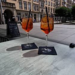 Wir genießen in der Sonne einen Kaffee und die einmalige Aussicht auf die Altstadt.