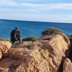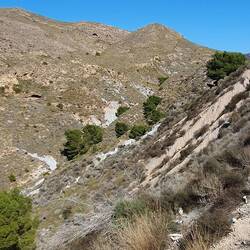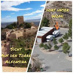 Nach einem gemütlichem, verspäteten Frühstück starten wir um eine verlassene Artelleriebatterie in der Nähe von Catagena anzuschauen. Womi muss durch die Berge klettern bis Barranco la delLäs mer