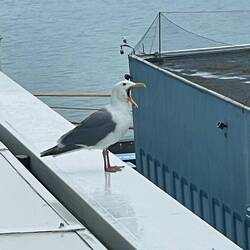 We arrived in Seattle overnight and left our big suitcases to the port valet…hope the bags will get home with us safely. It seems like Kyrie’s seagull friend sailed with us last night and wasLäs mer