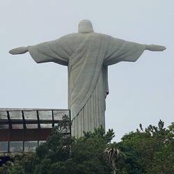 After she got us into the taxi we caught a bus to the main visitor center, but before that we met a group of young ladies from Chile who spoke with us about their adventures too. They were taking the train up though. After a ride up the jungle we ended up getting a fast pass ticket to get up to Christ the Redeemer. The steps were plentiful as well other tourists. Unfortunately the clouds were blowing in so he’s got his head in the clouds. But we got to see him!!!! It was bitter sweet though cause we were thinking about Vic (my grandfather and Mom’s father) and his time in Rio during World War II.