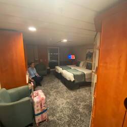 Got to our room and it is fricking HUGE. Our cabin steward is a sweet guy named Sandeep who seems like he’ll be a lot of fun. Managed to choke down some fries and a piece of watermelon at the cafe then left port around 9.Read more
