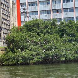 Because we docked in a working port we took shuttle from the ship to the terminal and from there got on our tour bus #1. We shared a catamaran with another group and though it was very hot, there was shade on the boat. We got to see two rivers, stingray river and capybara river. There were no sightings of either namesakes though. We made wishes as we went under the canal bridges.