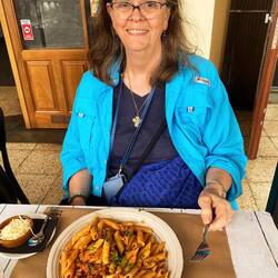 At the hotel Sara found us again in the waiting area Ava we had a great conversation with her. She even walked us partway to the port and hugged us good bye. We trekked to furthest port station and got in line to hand over our bags. It was very long as the ship was delayed and instead of boarding from noon on everyone had to board from 4 on so everyone and their brother got there at 4. Met a very nice Canadian lady who kept me company cause I made mom sit ands wait instead of standing in line. Got through the line for luggage, then the line for guest check, then another for actually boarding the boat. It took about 3 hours total.