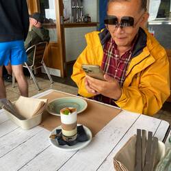 We did many on ship activities today. Morning workout, trivia twice, origami hearts, battle of the cake masters, an enrichment lecture on sea mammals, making tissue flowers, watching bingo, and dining (only place we ate all at day) at Teppanyaki.