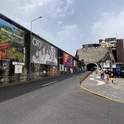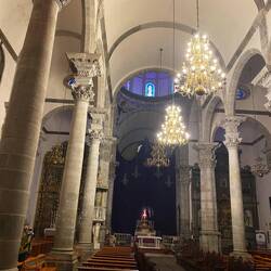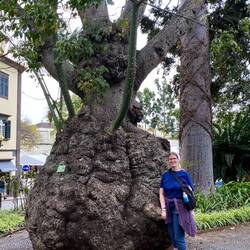 By the time we reached the stop point for the Dragon Tree, Icod, the rain intensified. Because it was a slippery, cobble stone hike to the church where we could see the tree, mom stayed on the bus with some of the others. Angél took us through a tunnel and into another town square.