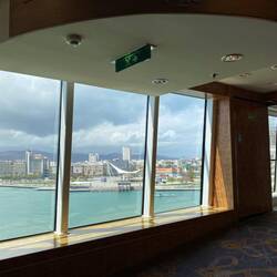 Things started a bit rocky today…They canceled our flights in the middle of the night. We had been rebooked but it was for tomorrow. We got to the main lounge to wait to disembark. We saw Abby and she said if we’d booked flights through NCL they’d help us. I went to the front guest counter to ask. The guy just looked at me kinda funny and pressed a bunch of numbers on the phone but then hung up immediately six or seven times. He then asked the only other crew behind the desk. ‘We don’t do anything about flights,’ he said and brushed me off.