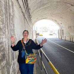 They were kind enough at the port security to allow the bus to drive us all the way back to our ships. After 9 1/2 hours everyone seemed like good friends because of Angél’s fun attitude. It was truly one of the best tours Mom and I have ever had. We said goodbye and some of our fellow travelers on the sister ship smiled and photobombed!