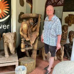 Tiekam aizvesti uz darbnīcu, kur no dažadiem kokiem izgrebj dažādas skaistas lietas. Piemēram maskas.