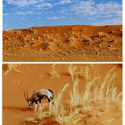 Für den Schluss noch ein Suchbild: in einer der Dünen entdeckten wir einen Oryx. Viel Glück bei der Suche!Läs mer