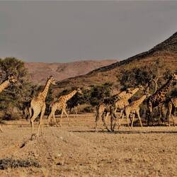 Auf der Heimfahrt große Aufregung im Bus! Unsere erste große Giraffenfamilie quert unseren Weg! Aus den gefühlt 20 Fotos ist heute noch eines übrig geblieben.