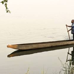 Auf der Weiterfahrt durchfahren wir den Caprivi-Streifen, ein absolut geradliniges Stück Land, etwa 450 km lang und ca. 30 km breit, geformt wie ein Gitarrenhals und auf der Karte wie ein Fremdkörper an der Landesgrenze wirkend. Und das ist nicht so weit hergeholt, im Grunde handelt es sich tatsächlich um einen Fremdeingriff. Der Reichskanzler Leo von Caprivi wollte auf deutschem Kolonialgebiet einen Handelsweg von Südwestafrika nach Zentralafrika bis Sambia und tauschte bei den Engländern dafür Helgoland und Sansibar ein (heute gehört wenigstens Helgoland wieder zu Deutschland). Der gesamte Caprivi-Streifen ist heute Nationalpark - ohne, aber auch mit menschlichen Siedlungen.