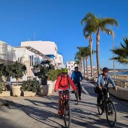 Eine weitere Radtour führt uns zum Palazzo di Donnafugata, der bereits im 14. Jhd. erbaut, jedoch Ende des 19. Jhd. vom Barone di Donnafugata zu seiner heutigen Größe erweitert und ausgebaut wurde. Den Palast kann man natürlich besichtigen, aber uns Banausen interessiert heute ausschließlich die kleine Gaststätte an der Auffahrt zum Palazzo, an der man so herrlich in der Sonne sitzen und die sizilianische Küche von ihrer vorzüglichsten Seite genießen kann (zu unserer Entlastung sei gesagt, die Besichtigung hatten wir schon vor Jahren). Der fast vollständig abschüssige Weg zurück entschädigt uns für die Anfahrt auf immerhin 300 Höhenmeter. Aber was jammern wir denn da, die meiste Arbeit erledigen schließlich Akku und Motor! Vergeblich versuchen wir, eine Erklärung für diesen ungewöhnlich engen Kondens-Kreis am Himmel zu finden - ist schon irgendwie beeindruckend, gibt's da oben jetzt auch schon Kreisverkehr?!