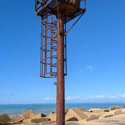 Eine der Radtouren führt uns nach Scoglitti, einem kleinen Fischer- und Urlaubsort, wo wir mal wieder ein typisch italienisches Frühstück einnehmen und beim anschließenden Spaziergang auf der Mole feststellen, dass sogar die stabilsten Eisenkonstruktionen eines Tages von der salzhaltigen Meeresluft aufgezehrt werden.