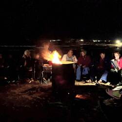 Aber deshalb hat uns noch lange nicht der Winterschlaf übermannt! Beim beinahe täglichen Boccia-Spiel steht zum Glück der Spaß deutlich über dem Siegeswillen. Eines Abends sitzen wir Alle im Aufenthaltsraum beim gemeinsamen Pizza-Essen, haben viel Spaß und lernen uns noch besser kennen. Dieser Raum wird außerdem allabendlich zum Spielen genutzt. Auch der tolle Lagerfeuer-Abend mit Gitarre und Gesang am Strand schmiedet die Leute, die ja überwiegend hier überwintern werden, zusammen.