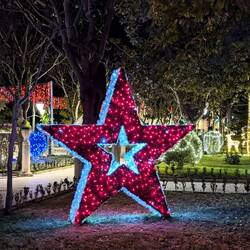 Park und Stadt machten mit ihrer üppigen Weihnachtsdekoration Lust auf eine Wiederholung des Besuchs, und zwar am Abend (erst dann soll hier so richtig das Leben einkehren!).