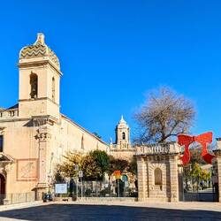 Im Aufenthaltsraum hängt ein Bild, das unser nächstes Ausflugsziel auf einfache, aber typisch charakteristische Weise darstellt. Denn wenn wir uns schon nicht viel auf der Insel Sizilien bewegen, so möchten wir doch wenigstens Ragusa wiedersehen. Am Mittwoch nutzten wir das schöne Wetter und tourten im PKW unserer holländischen Freunde mit. Die Stadt mit ihren 73.000 Einwohnern hat viel zu bieten, aber uns zieht es jedes Mal zum Stadtteil Ibla auf einem der Stadt vorgelagerten Berg.