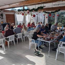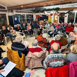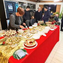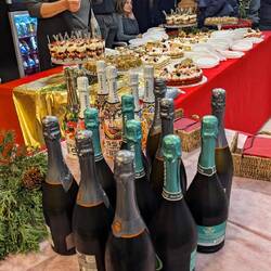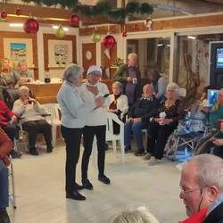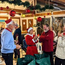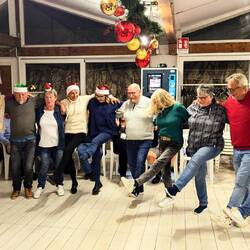 Am Abend kamen ca. 75 Leute zu Glühwein, Singen, Wichteln zusammen. Durch unseren zweisprachigen (italienisch und deutsch) Moderator Luigi aus der Schweiz und die reizende italienische Weihnachtsfrau Marchella war das ein Riesenspaß! Im Anschluss wurde noch lange ausgelassen getanzt.