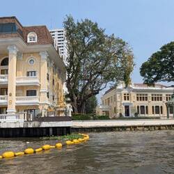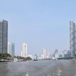 Eine Flussfahrt sollte es heute werden. Erstmal auf dem Chao Phraya bei viel Verkehr, ordentlichem Wellengang und für ganz kleines Geld zum Beschnuppern der Stadt vom Wasser aus. Zuvor frühstückten wir sehr angenehm im Coffee Club, zwar zu Deutschland-Preisen, aber der Kaffee schmeckte sogar besser als vorgestern beim benachbarten Starbucks.
