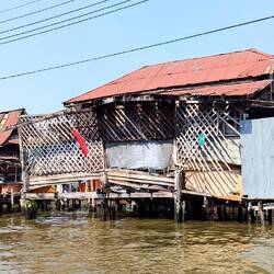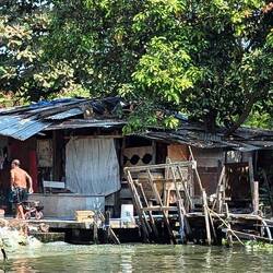Dann erschließt sich uns ein neues Gesicht dieser Megastadt. Wenige villenähnliche Grundstücke, die das Foto aber nicht wert sind, verteilen sich auf den endlos weiten Flächen. Überwiegend begegnen uns einfache Häuser bis hin zu sehr ärmlichen und windschiefen Hütten. Natürlich sind das die Motive für den sensationslüsternen Fotografen. Man erkennt aber auch den Charme, sei es die überdachte "Terrasse am Fluss" oder das liebevoll mit Pflanzen dekorierte Heim.